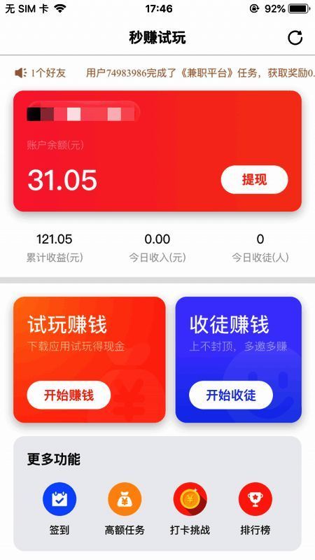 3. 邀请的用户越多,收益越高,朋友试玩自己还能获相应佣金。