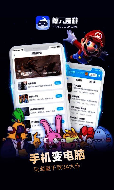 鲸云漫游官方版2024,作为一款极具创新性的云游戏平台,凭借其先进的云游戏理念与卓越的用户体验,成为当下备受瞩目的游戏平台之一。在该平台上,玩家无需耗费时间下载庞大的游戏安装包,就能尽情畅玩各类热门游戏。从经典的3A大作到新颖的独立游戏,鲸云漫游为不同喜好的玩家提供了丰富多样的选择。