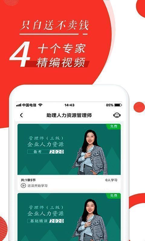 【2018国家注册人力资源经济管理师人力资源新版免费视频】同步2018国家权威考试大纲,按章节系统学习,360度无死角,国家正规考试教材,2018新录制视频,支持离线下载与清晰度选择,在家用手机就能学。