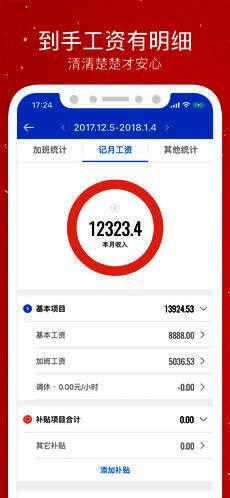 2. 记录加班时间后,自动帮您计算加班工资及当月总工资。