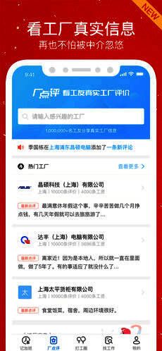 5. 厂点评,能查看工友真实评价,目前已积累十万家工厂真实信息。