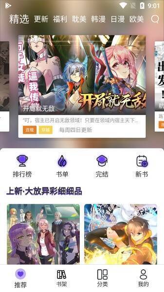 软件中精彩流行的漫画琳琅满目,涵盖各种时下热门类型,并且实时更新各类漫画资源。它为用户提供了便捷的收藏功能,方便用户对喜爱的漫画进行分类管理,轻松打开即可展示自己钟爱的漫画。各类作品均设有评分,客观反映其吸引力和受欢迎程度,可作为用户选择阅读的参考依据。每天都有作品连载更新,书架上的漫画、小说会快速更新并及时推送。