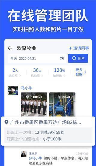 1. 拍照自动打卡:拍照时自动添加时间、地点等打卡水印,保障照片真实性与可信度。