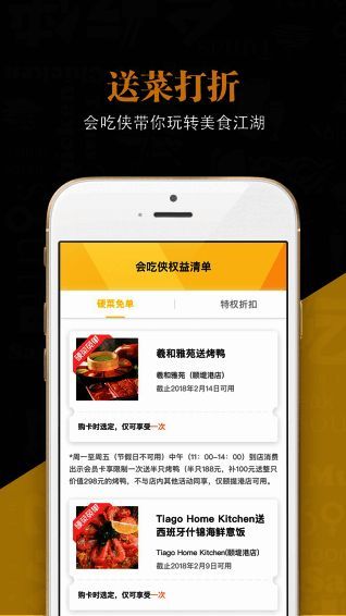 《会吃侠》是全球美食特权俱乐部的先锋,专注整合和发行全球美食特权,只为会员提供专属美食特权与管家服务。成为会员,可在全球享受7大美食特权,如硬菜免单、特权折扣等,更多特权不断更新,会员身份彰显尊贵。