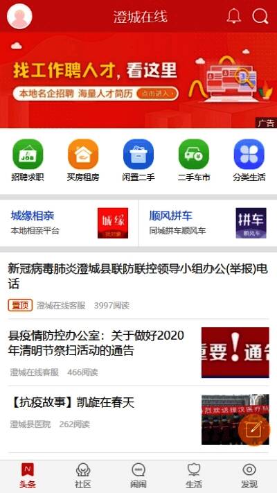 澄城同城APP实用性强,专注于手机端新闻及当地服务功能。能找到城市各类服务,涵盖衣食住行、团购、招聘等,新闻实时发布,有需求的朋友别错过,赶紧下载!