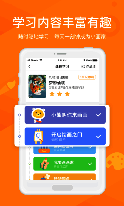 小熊美术是专业的在线少儿美术启蒙教育应用,精品体系课程激发孩子创造动力,多维度教学形式让孩子学习兴趣持久。APP 拥有丰富有趣的学习内容,趣味 AI 互动课堂让大家充分感受美术的魅力。