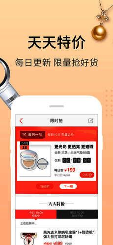限时特卖:每周一、三、五早10:00定时更新,每期有30 - 50个品牌限量开卖,每个品牌展示销售5 - 7天,售罄即下架。限时特卖物超所值,品牌正品享受抄底折扣,全年365天主题促销不断,多种创新特卖形式,为用户精打细算,打造超值购物体验。