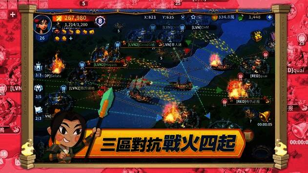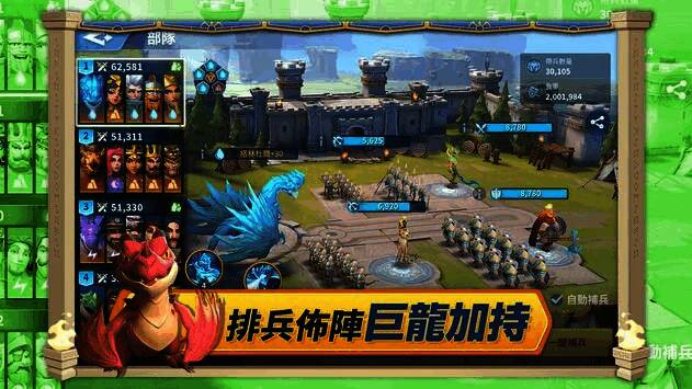 3. 自由发展:可自由建设城堡、研发科技、培养英雄,壮大势力争夺领地。