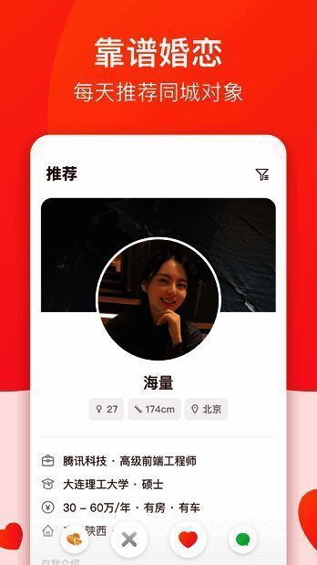 这是个以婚姻为前提的认证脱单平台,能开展有趣社交活动,助你找到心仪异性。