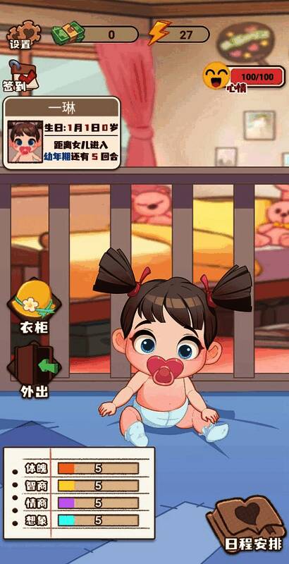 3、以养育女儿为主线,玩家需要在游戏中照料女儿的生长过程,一起完成自己的工作梦想。