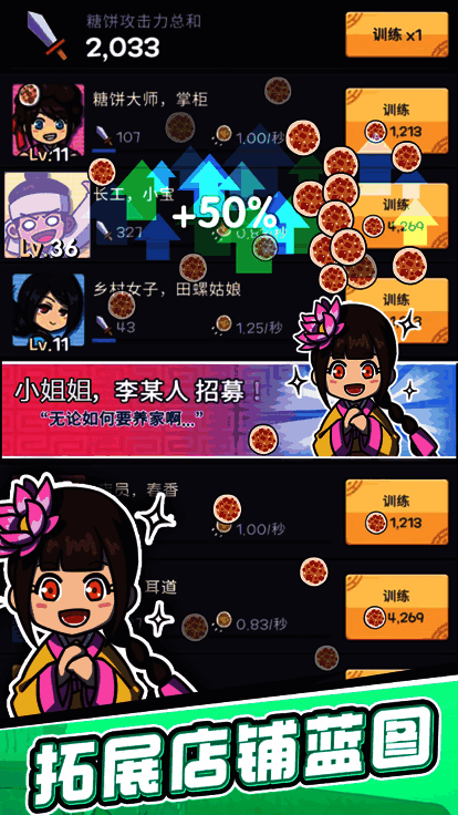 4. 自定义强:可自由定制店铺装饰、员工服装、糖饼口味。