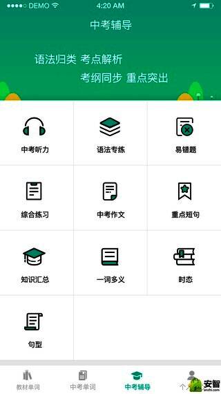 借助初中英语宝平台,你能大幅提升英语能力。它对初中所有语法知识进行梳理,便于背诵学习。每个单词都需结合语境理解,软件能巩固重要语法内容。这里准备了众多中考听力真题,可直接收听,常用单词解析也能查看,你能按自己的方式整理学习。