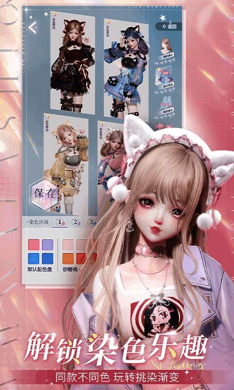 在此,你能为每件衣服赋予多彩生命力。大到上下衣,小到裙摆蕾丝,多个部位都能染色,上百种配色供你自由组合;渐变染色、撞色染色等多种染色方式任你创造。除了雪色和月色,一定还有属于你的独特绝美色彩。