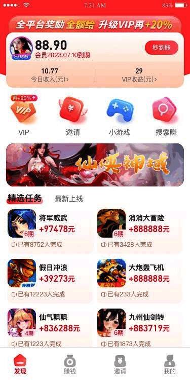 2. 每日签到:设有每日签到机制,签到次数越多奖励越丰厚,增加用户挣钱机会。