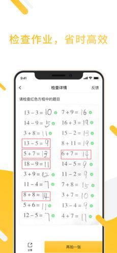 1、拍照检查:1 秒完成批改,错题清晰可见,识别准确率在行业内领先,支持四则运算、单位换算、脱式、竖式、分式等多种题型。