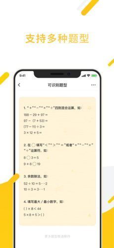 使用小猿口算拍照检查口算题,1 秒即可得出结果,有助于老师和家长更高效地检查孩子作业,且支持四则混合运算、比较大小、带余数除法等多种题型。