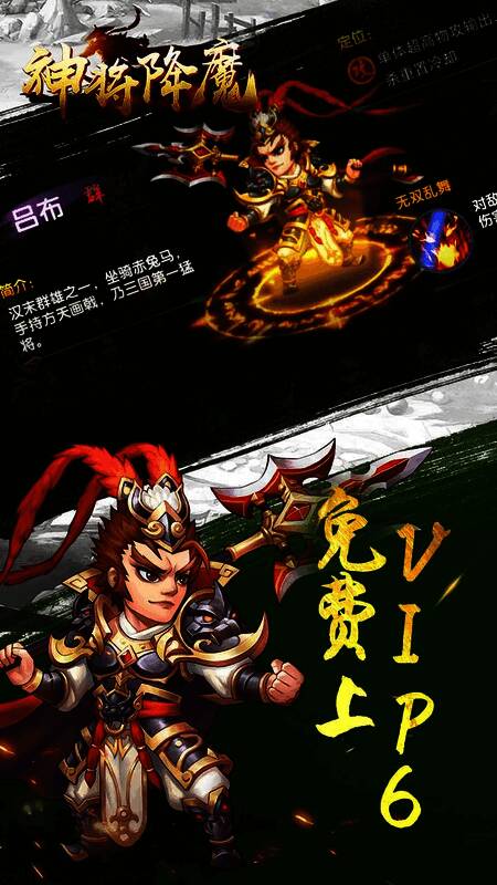 2019年度半回合制半即时战略游戏《神将降魔》重磅上线!玩家能在游戏里感受真实战场,自由PK,激情爆装,血战到底。顶级神装自带专属特效,是身份的象征。万人城战,与兄弟携手共夺皇城。上线就送免费VIP6,策略御敌,君临天下。经典题材全新呈现,带你领略不一样的世界,喜欢就赶紧下载!