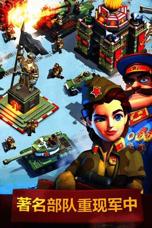 一方领土,通过策略布防打造最强基地,能轻松抵御敌人进攻。完美还原欧洲经典二战战役,各国精锐部队登场,精锐部队是战术进攻核心。美苏德三国各有发展路线,拥有独特特色兵种和将领。可收集十大著名元帅,不同指挥官与兵种战术搭配影响战局。还有50vs50的百团全民军团大作战,围绕基地和资源产地攻防,获胜军团获丰厚奖励。