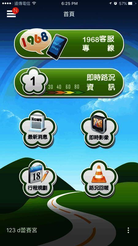 新版本的主菜单摒弃了以往俗气的UI界面,首页菜单排列更直观、整齐。它提供实时的1968客服和报告功能,能直接查询实时路况、公路实时图像和备选道路,还可通过App菜单了解最新信息、实时路况、时间预测和服务区查询。