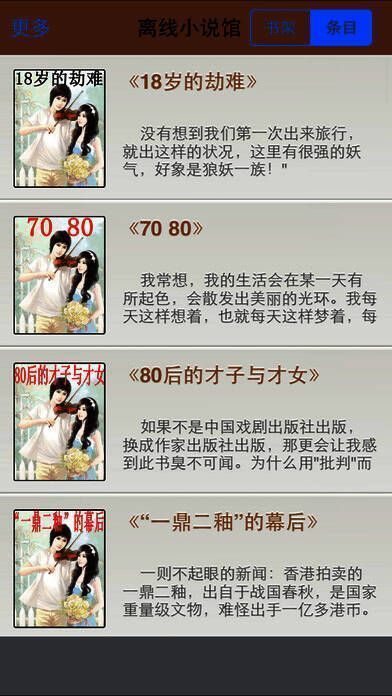 《离线小说馆》——没错,就是离线读小说!它无需繁琐下载,也不用受蜗牛网速的困扰,一次下载,终身都能畅快阅读。而且是离线免费的,现在还限时免费哦,机会难得,手快有手慢无!图书会持续更新,欢迎大家关注。