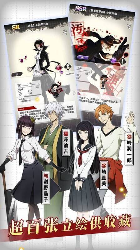 怀有文豪之名的游戏角色齐聚,像「中岛敦」「太宰治」「芥川龙之介」等;通过羁绊养成,打造专属队伍,成为最强伙伴。