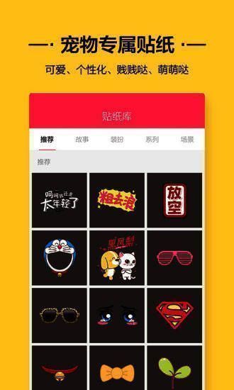 2、宠物专属贴纸:有宠物百变贴纸,能让宠物瞬间化身大咖,像哆啦A“萌”等上千种搭配可供选择。