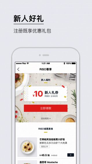 2、RISO是“系食”专门为用户打造的手机移动应用,是一款集网上购物和门店购物功能于一体的App。