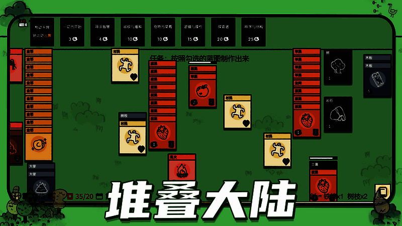 游戏任务繁多,难度越高越能展现脑力,打造更出色的任务成果;纸牌完美结合多样打法,或许能让你坚持许久并建成村庄;级别任务众多,需用不同技能来堆叠。