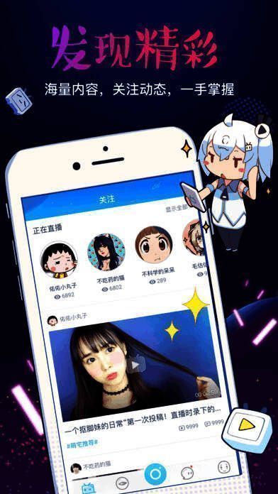 一键开启直播,你也能成为直播界的新星;拍摄、上传短视频,分享生活中的精彩瞬间,每个人都能成为视频创作者。弹幕互动热闹非凡,还有美颜、录屏和歌单功能,让你在二次元世界不再孤单。