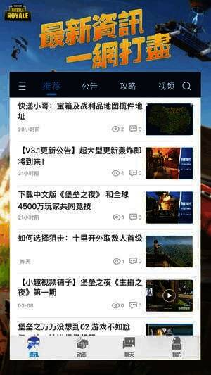 1、首页:有丰富的堡垒之夜相关公告、资讯、攻略和视频,让你刷个不停。