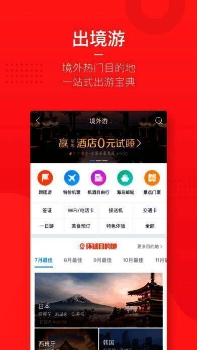 5、境外游:覆盖海外900多个城市,100%覆盖全球热门旅游国家,随时为您服务。