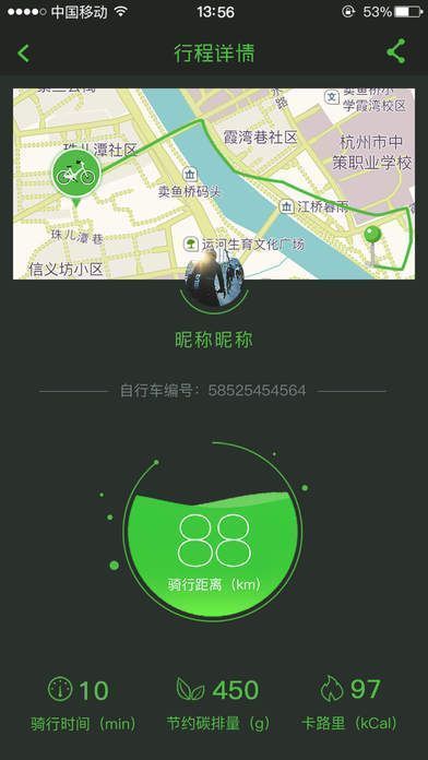 4. 记录骑行轨迹:每次行程都有详细记录。