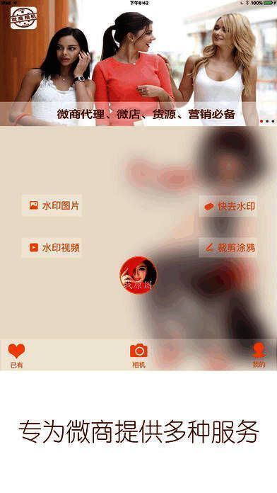 它是微商玩转代理、微店、寻找货源以及赚钱必备的水印修图视频相机。《微商相机》专为微商量身打造,是一个集水印视频、秒拍快速加水印、去水印、裁剪、涂鸦、找原图、批量水印制作等功能于一体的平台,能帮助微商提升生意业绩,赚取更多利润。