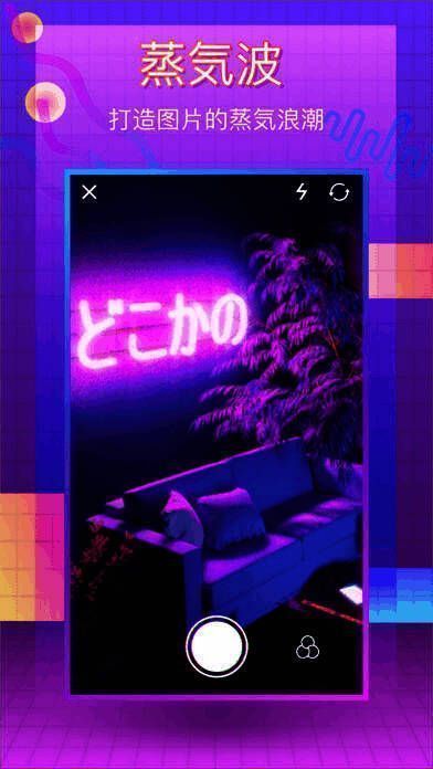 3、使用VaporCam,就像坐上挂满霓虹灯的时光机,带你穿越到八九十年代。