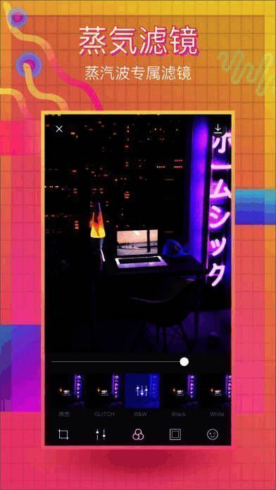 1、VaporCam,作为超现实图片编辑器,能够打造出酷炫的蒸汽浪潮效果。
