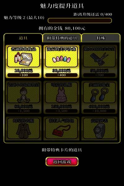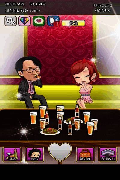 只需点击雫接客时出现的商品,就能赚取金钱。用赚得的钱购买提升魅力的道具,可增强雫的魅力。当可爱的雫魅力提升后,还能收到她的信息报告。教学结束后,先添购商品并将其等级提升至10级,积极宣传店铺,合理使用服务生通知赠与的活动道具,别错过定期出现的富豪客人活动。使用钻石能大幅提升魅力,初次玩家可优惠获取钻石。