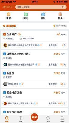 3、赚赏金:推荐有赏,分享有礼,赚赏金轻松容易。推荐企业发布岗位,招到匹配人才就有奖励;推送人才报名工作,完成既定任务就有打赏;邀请注册、发布岗位、完成工作、评价分享、点看广告等还能赚蜂币,蜂币可当钱花。