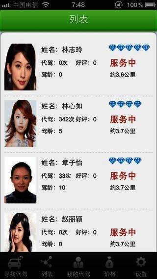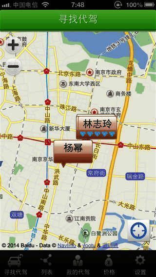 2、乘客能通过软件找到附近的5名司机并进行自主挑选。