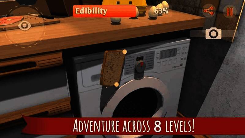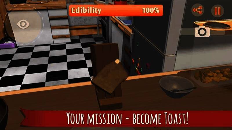 游戏中面包展现出了惊人的毅力和求生本能,通过跳跃移动来逃离这个“地狱厨房”。玩家需要闯过大量试图拦截的电器和厨房用具,还能躲藏到角落里进行伪装,比如躺在盘子里,让人类误以为是别人的早餐,从而躲过一劫。