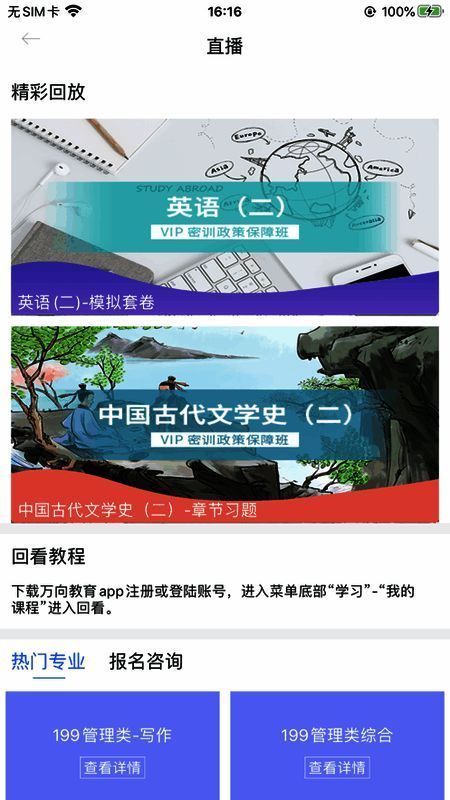 万向教育app是口碑极佳的综合备考资讯平台。其管理平台覆盖各领域、各专业,不仅有海量学习资源,还能让用户及时了解最新教育通知资讯。这里往年真题、学习资料一应俱全,可随时练习,满足所有用户的学习需求。