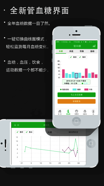 它是糖尿病人专业的血糖管理工具,也是慢病糖尿病医患交互服务平台;