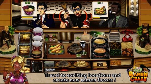 《拉面餐厅》(RamenCraze)是一款模拟经营日本拉面店的游戏,内容丰富多样。玩家要从技术、面积、工人、品质等多方面提升拉面店。这不仅是考验手指灵活度和时间管理技巧的烹饪游戏,还让玩家身处日本各地,用不同食材制作当地特色口味的拉面。煮好面加完材料后,需在数十秒内送到顾客面前,否则会影响口感。