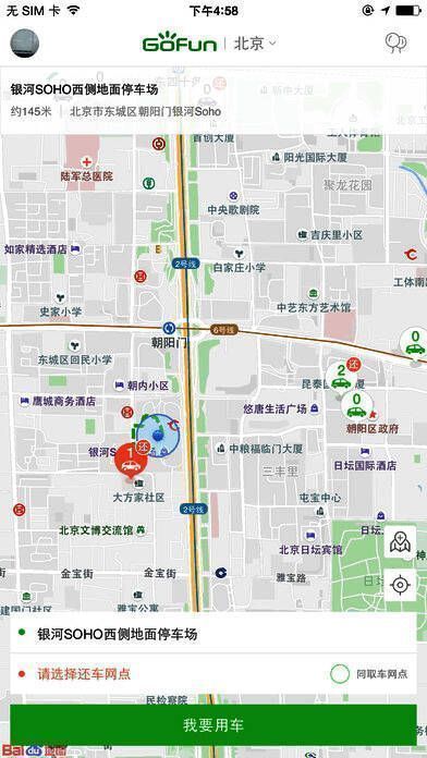 3、在北京、上海、青岛、厦门等全国16个城市,设有千余个网点,拥有上万辆Gofun共享汽车,能为你的旅行、商务、上下班通勤等出行提供更智能的定制化、场景化服务,真正实现随用随取、随取随还。