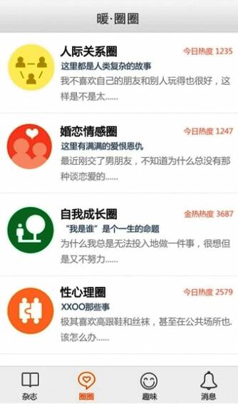 暖心理 app 是一款内容丰富的资讯阅读应用。通过它,用户可以查看最新杂志,让自己每天充满正能量;收听专业催眠师录制的减压音频,身心放松,轻松入眠,更好地释放压力;还能获取 20 种神秘梦境的心理学解释,科学解梦;参与人际关系、婚恋情感圈等,了解生活中的更多相关事宜。暖心理,愿你被世界温暖以待。