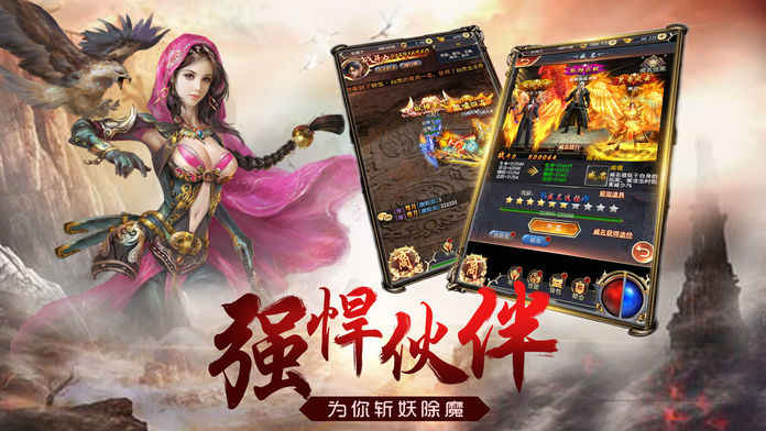 1、装备提升:通过装备强化、镶嵌宝石、注灵、升级等方式打造强力装备,橙装、龙装、神装、神器、特戒满足你的收集欲望。