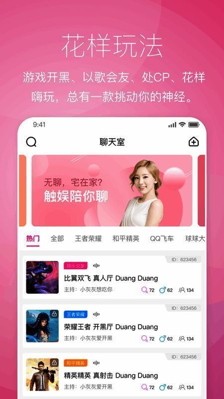 想要进行更深入的交友吗?那就赶紧下载《触娱》这款语音交互软件!在软件里,有声音各异的小哥哥小姐姐等你聊天,你可以挑选合心意的声音与对方彻夜畅谈。快来下载体验吧!