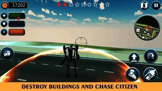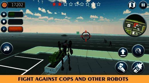 快来体验这款全新的机器人动作游戏!化身为强大的变形金刚,在街头肆意漫游,将一切活物摧毁!成为人类真正的噩梦,隐匿于警察之中,尽情享受机器人的乐趣!