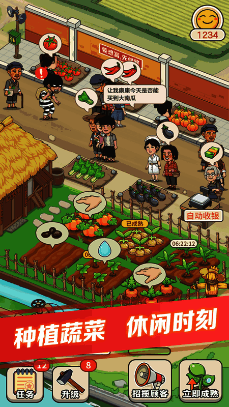 1. 玩家需在自己的蔬菜市场完成各项任务,收集更多有机蔬菜用于售卖。