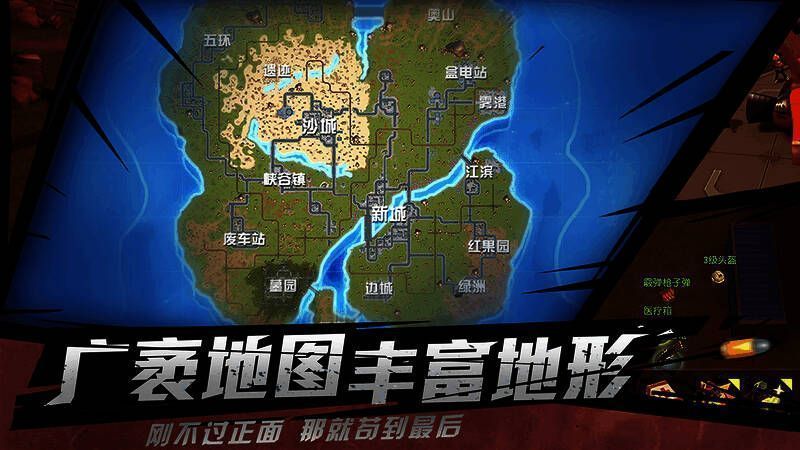 地图有广袤的原型设计,可自由切换多地形,刚不过对手就合理利用地图苟到最后;