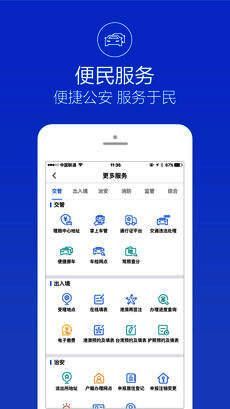 3、治安服务:可进行身份证办证进度查询、流动人口登记、身份验证、电话防诈骗等操作,既便利了群众生活,又提高了全民安全防范意识。